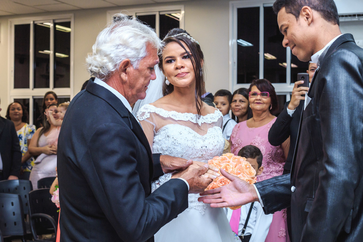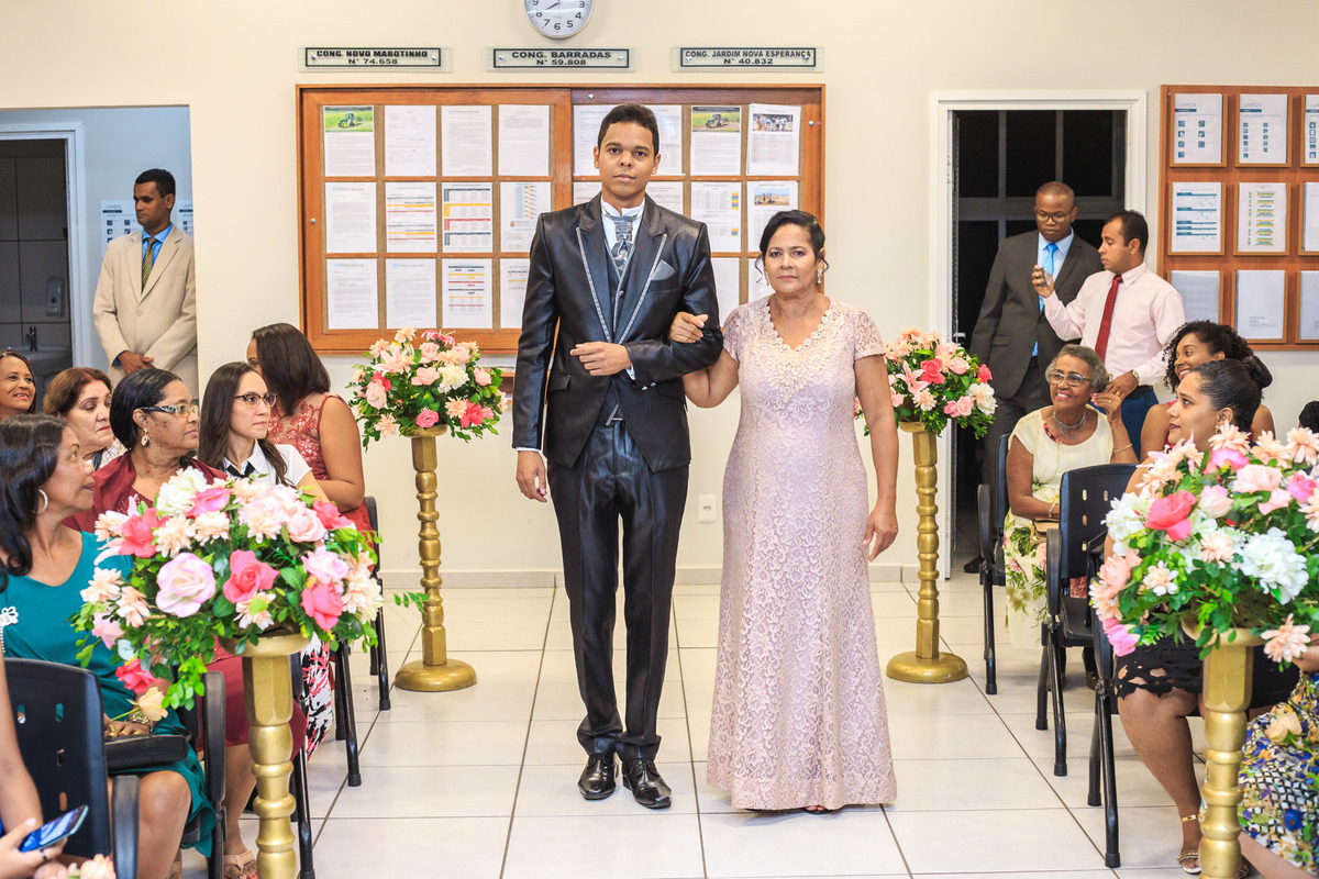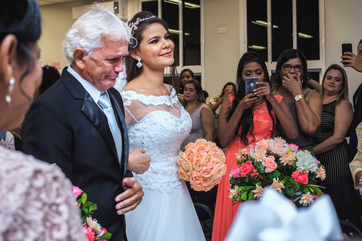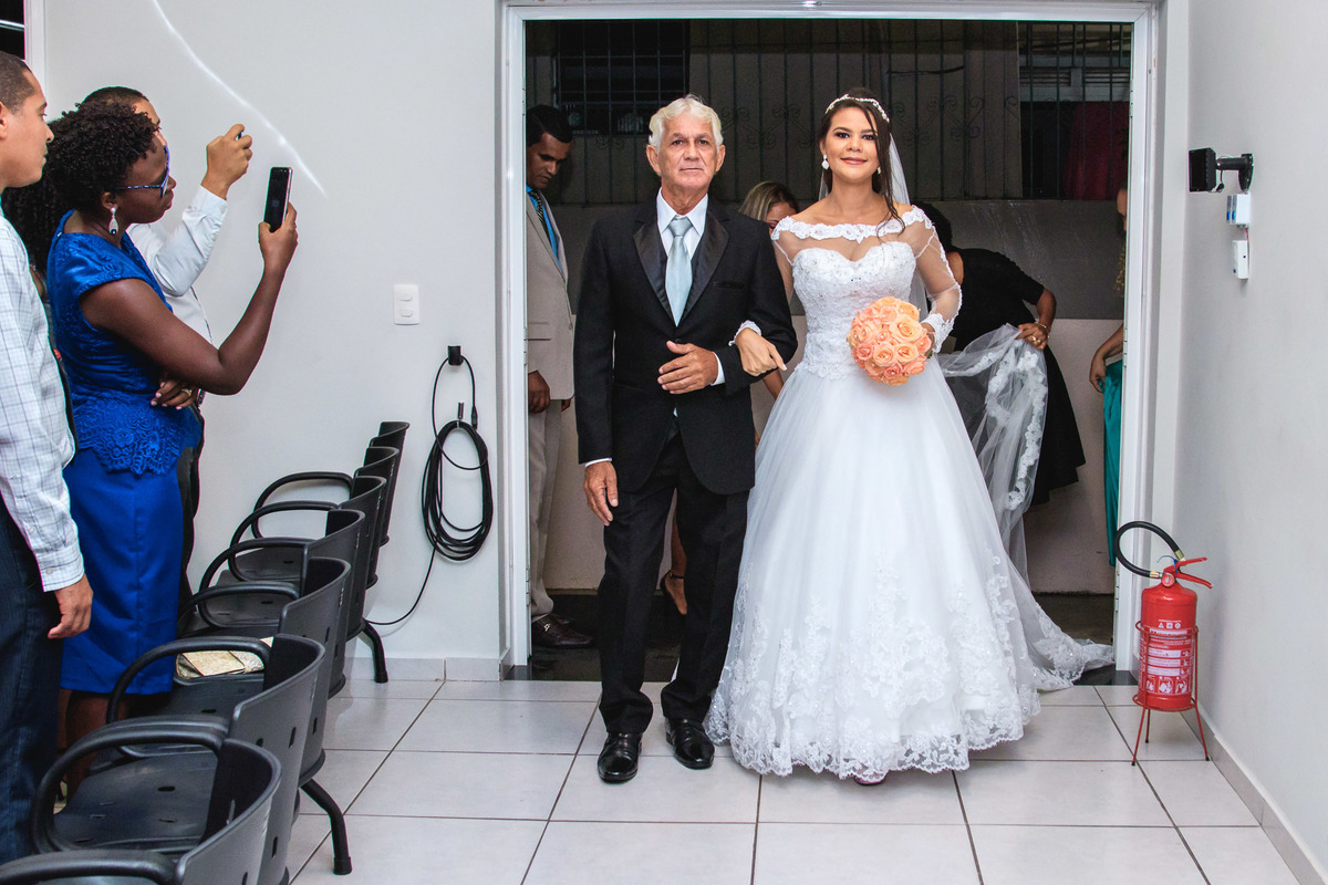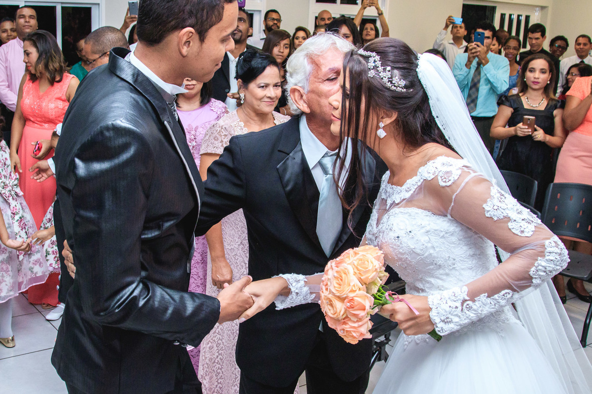 Emoção do início ao fim, desde a grande preparação do Making Of no Hotel Intercity em Lauro de Freitas, com sua querida prima que fez a make e a sua amada mãe que foi seu apoio durante esse momento emocionante, até a chegada na cerimônia que já iniciou com sábios conselhos da querida vozinha antes da entrada, enquanto do lado de dentro o noivo com os amigos e familiares aguardavam ansiosos a entrada da noiva. Até chuva resolveu aparecer bem na hora da entrada, mas não atrapalhou esse momento, pois a noiva entrou radiante com seu pai, que se emocionou ao entregar sua amada filha. Enfim, o casamento até a recepção teve lindos momentos de todos.