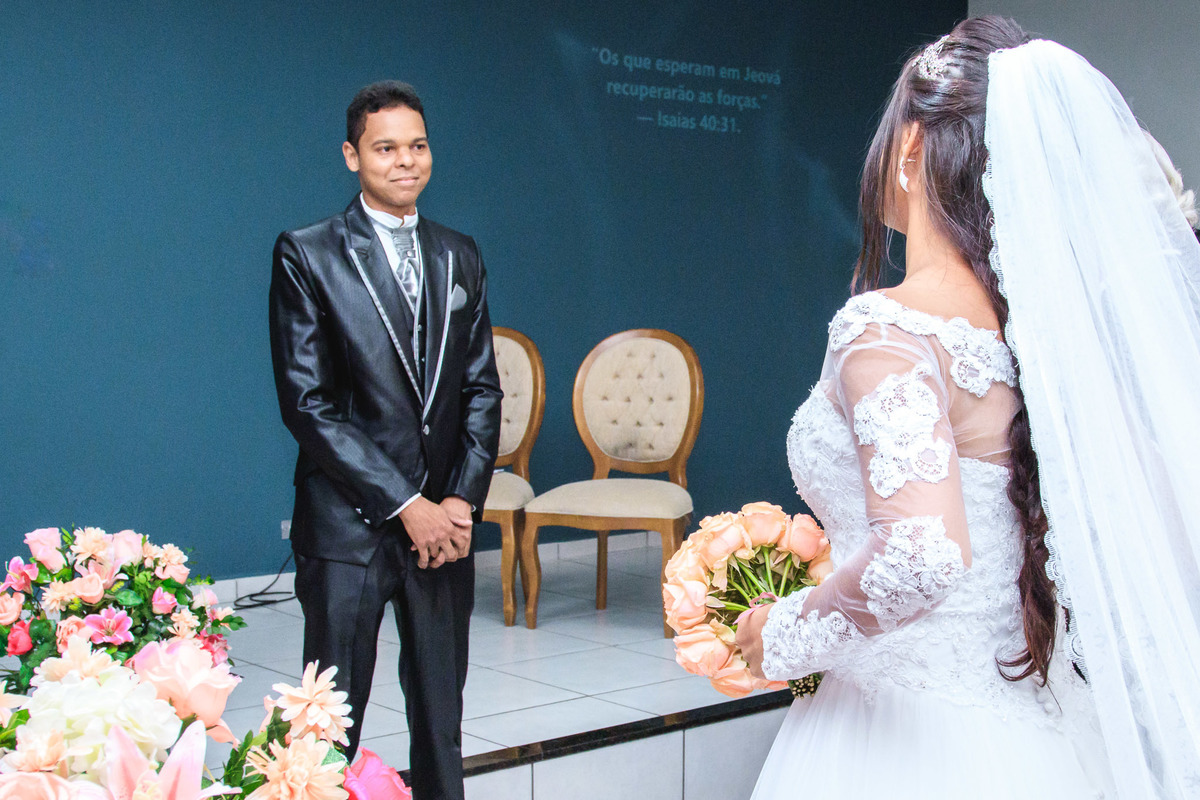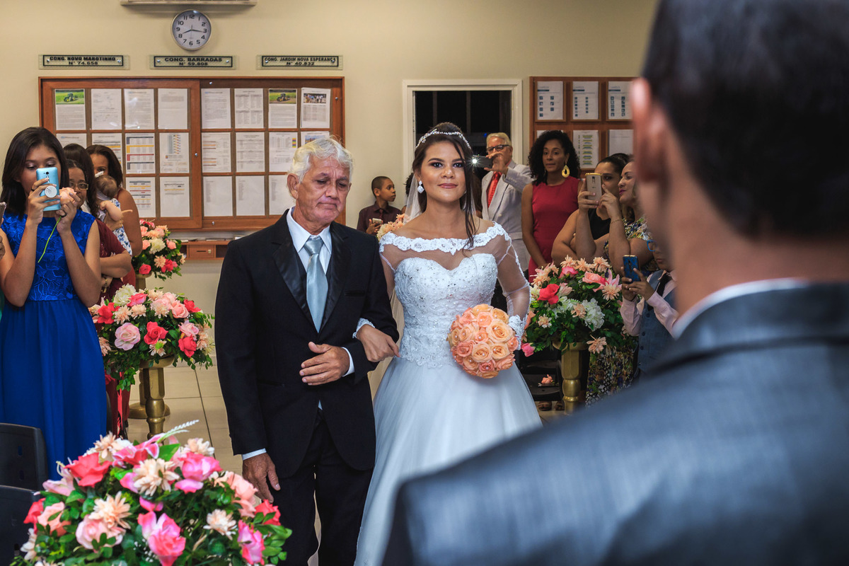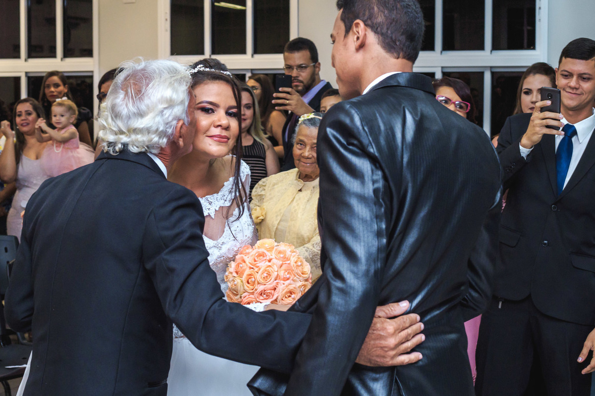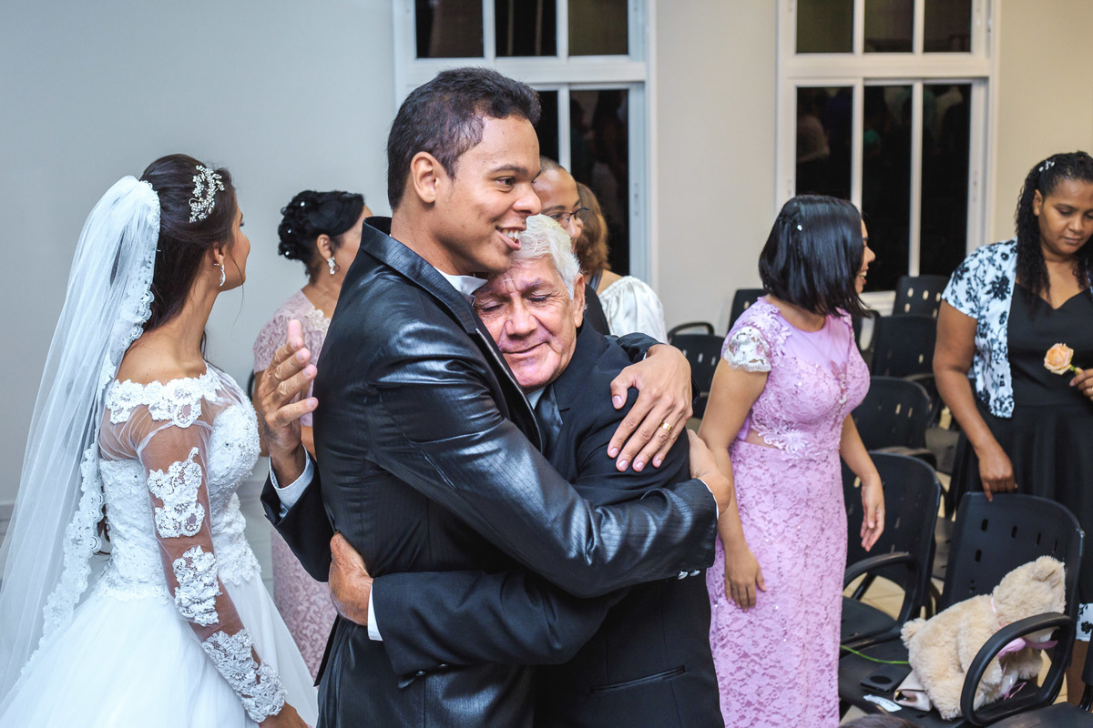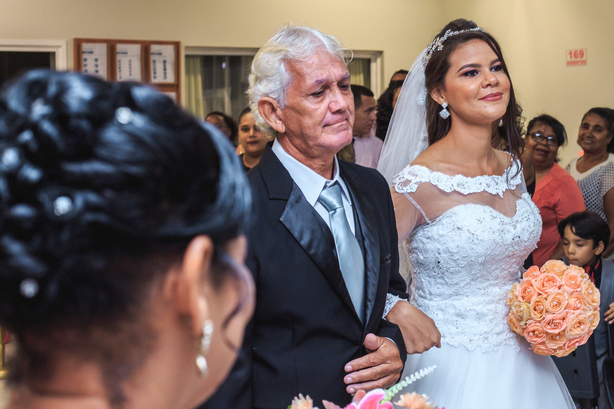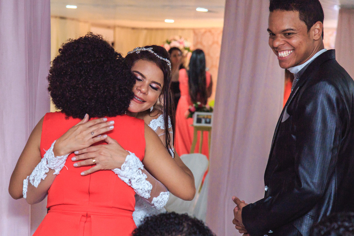 Emoção do início ao fim, desde a grande preparação do Making Of no Hotel Intercity em Lauro de Freitas, com sua querida prima que fez a make e a sua amada mãe que foi seu apoio durante esse momento emocionante, até a chegada na cerimônia que já iniciou com sábios conselhos da querida vozinha antes da entrada, enquanto do lado de dentro o noivo com os amigos e familiares aguardavam ansiosos a entrada da noiva. Até chuva resolveu aparecer bem na hora da entrada, mas não atrapalhou esse momento, pois a noiva entrou radiante com seu pai, que se emocionou ao entregar sua amada filha. Enfim, o casamento até a recepção teve lindos momentos de todos.