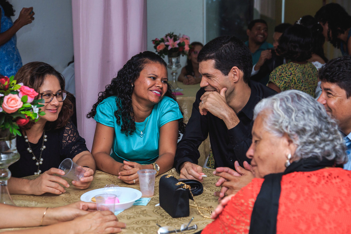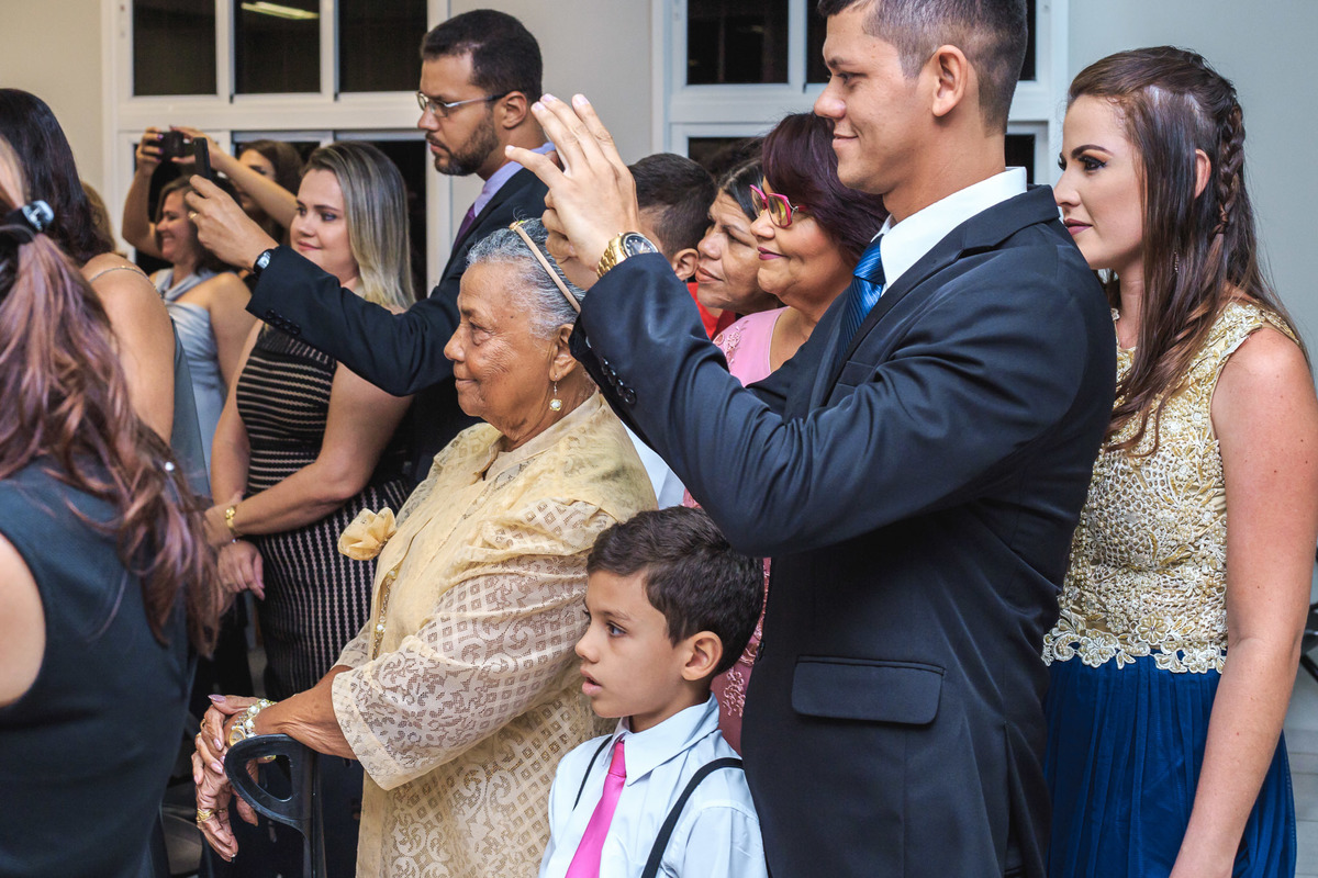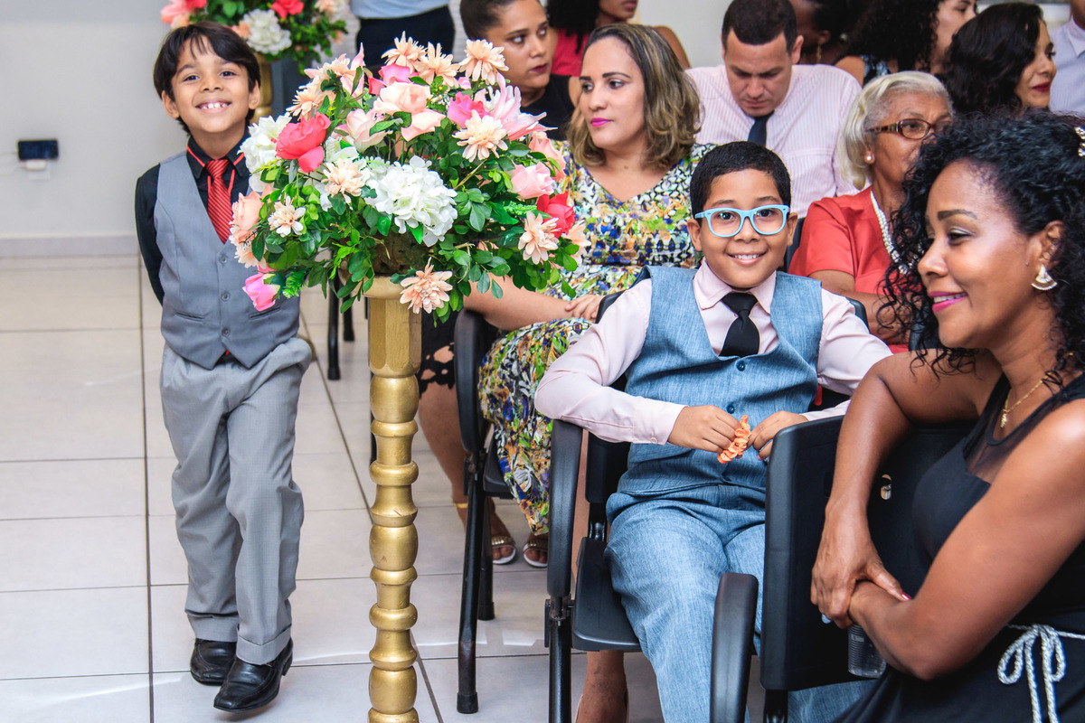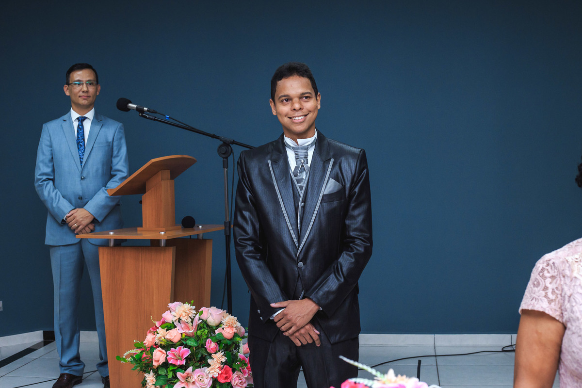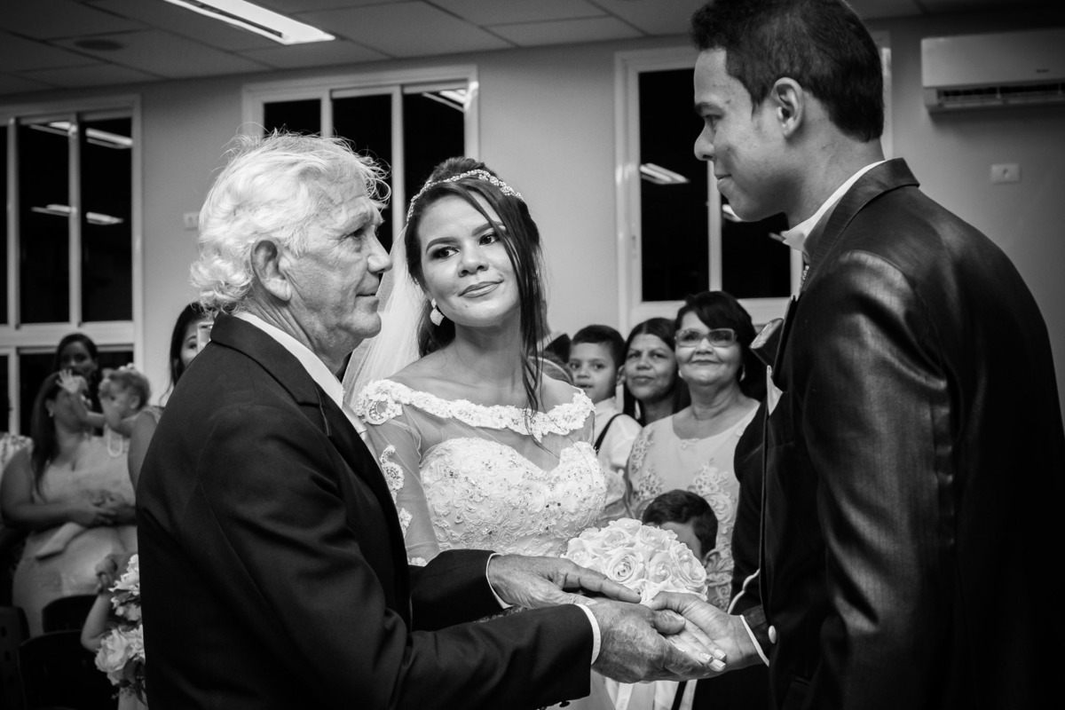 Emoção do início ao fim, desde a grande preparação do Making Of no Hotel Intercity em Lauro de Freitas, com sua querida prima que fez a make e a sua amada mãe que foi seu apoio durante esse momento emocionante, até a chegada na cerimônia que já iniciou com sábios conselhos da querida vozinha antes da entrada, enquanto do lado de dentro o noivo com os amigos e familiares aguardavam ansiosos a entrada da noiva. Até chuva resolveu aparecer bem na hora da entrada, mas não atrapalhou esse momento, pois a noiva entrou radiante com seu pai, que se emocionou ao entregar sua amada filha. Enfim, o casamento até a recepção teve lindos momentos de todos.