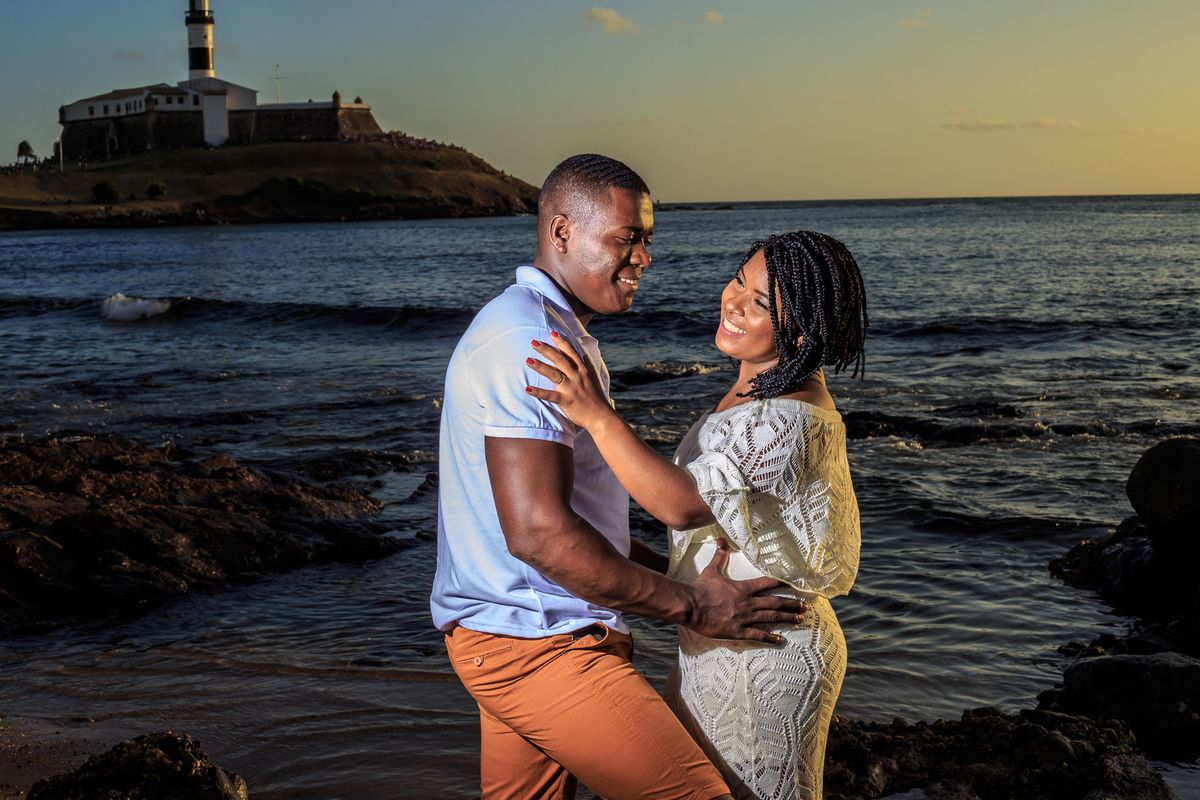 Esse ensaio fotográfico é muito especial, pois estão comemorando o primeiro ano de casamento (Bodas de Papel), em um local lindo na Bahia que é o Farol da Barra, onde contemplamos o pôr do sol em clima de muito amor e romantismo.