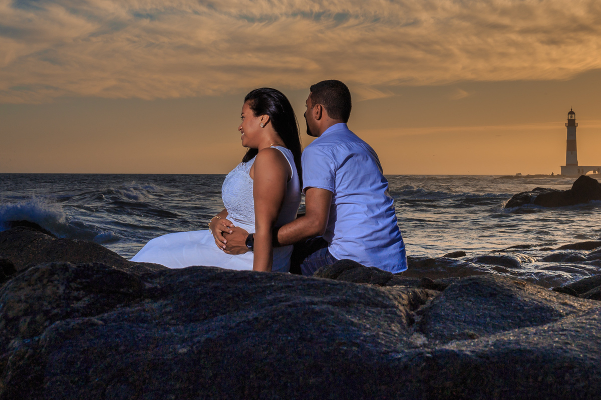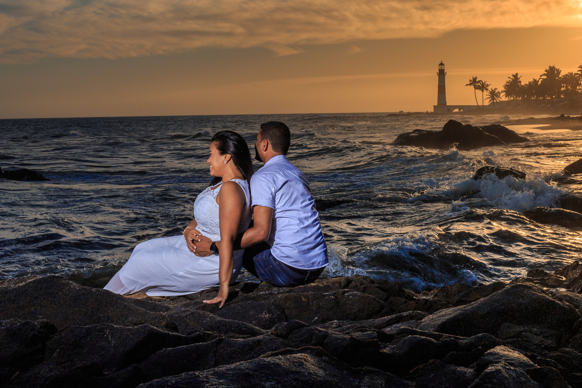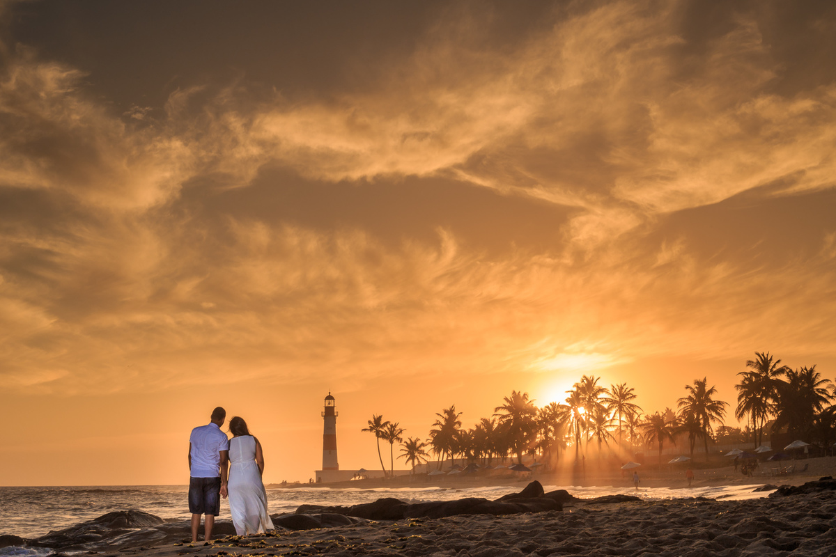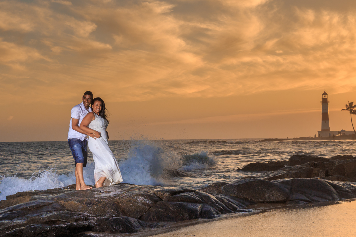 Ensaio Pré-Casamento na praia já é lindo e contando ainda com um lindo pôr do sol fica simplesmente incrível, pois é, esse ensaio foi feito na linda paisagem do tão conhecido Farol de Itapuã, Salvador-Bahia.