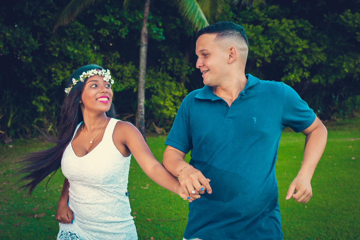 casal fazendo ensaio pré-casamento na praia do forte bahia