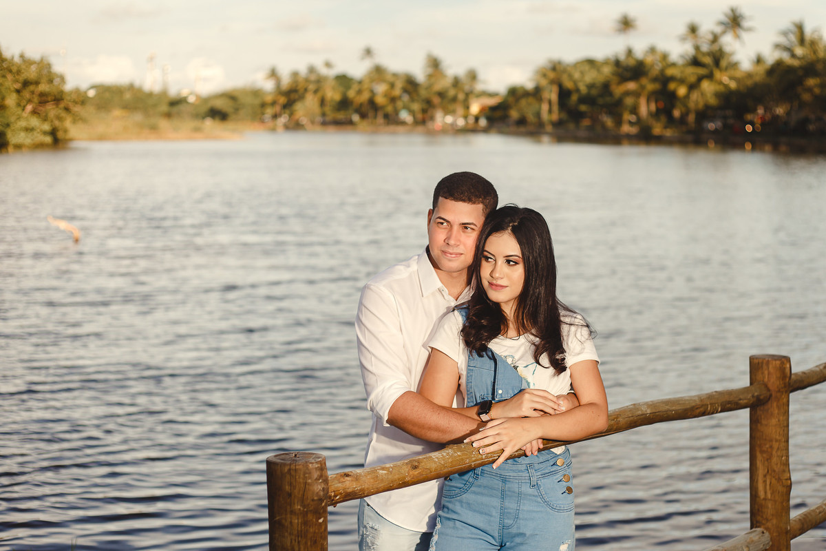fotografia de casal romântico perto do rio em ensaio na Praia do Forte Bahia
