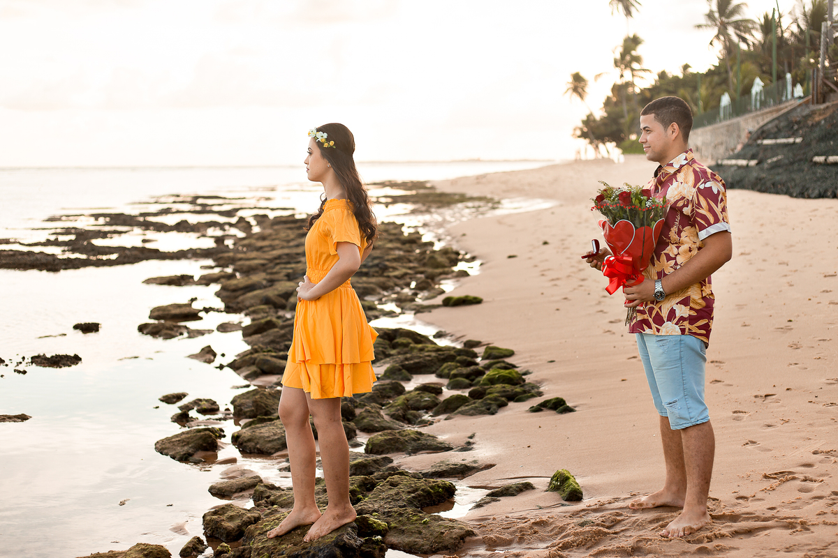 ensaio de noivado em frente ao hotel Tivolli na Praia do Forte Bahia