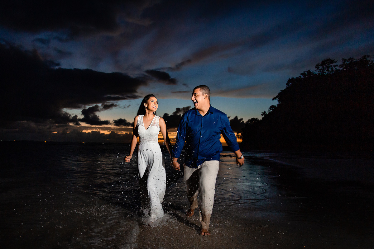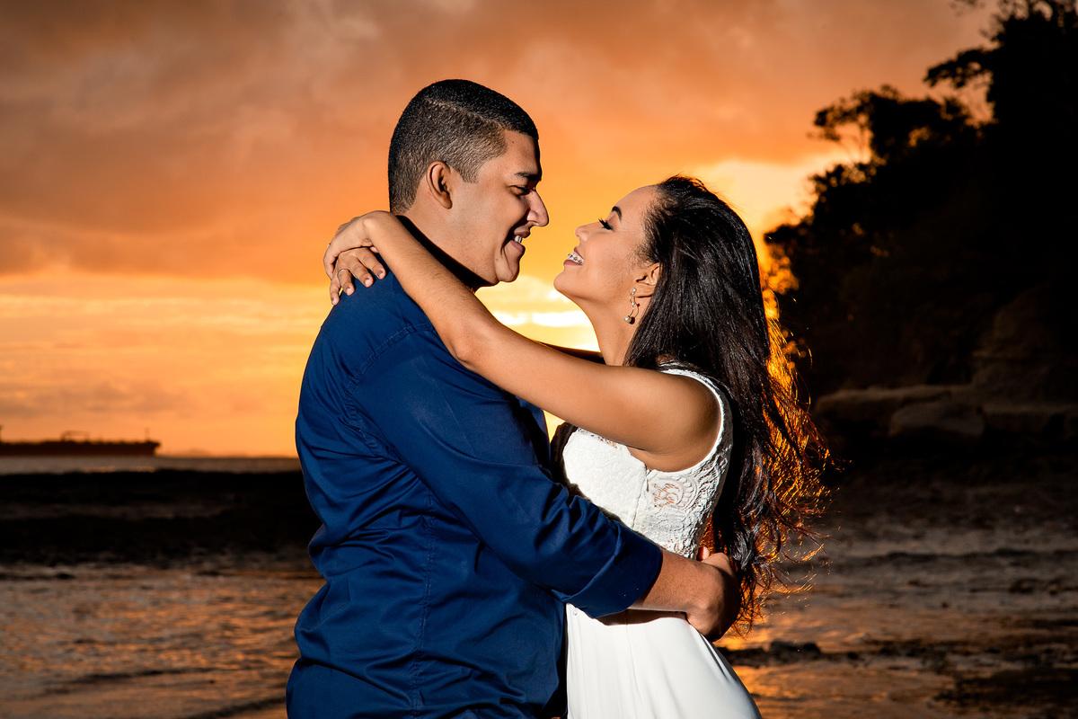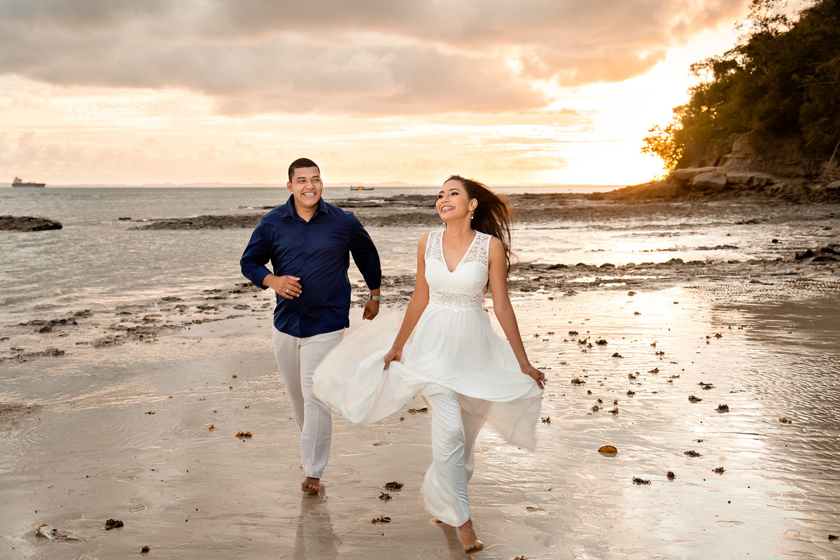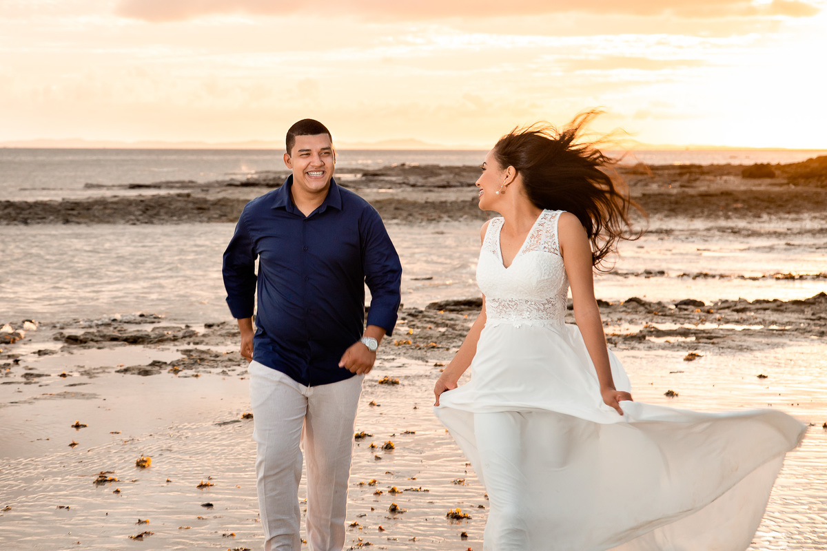 Descubra a magia de um ensaio pré-wedding inesquecível na Praia de Inema, Salvador. Olha só como o ramantismo desse casal deixou o nosso trabalho fácil pra capturar o amor que estava transbordando em olhares e sorrisos contra o pano de fundo do pôr do sol baiano!